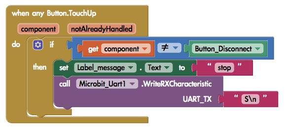 用 anyButton.TouchUp 来管理所有按钮的 touchUp 事件,缺点是 Disconnect 按钮也算进去,您可以在事件中加入 component 不等于 Button_Disconnect 就可以了。